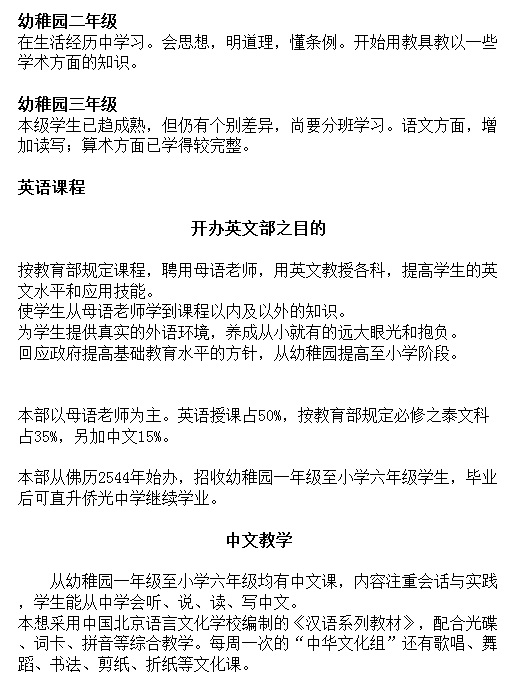 1. To offer English teaching of all subjects to children following the Ministry of Education curriculum and ensure their excellent English language skills, by native speaking teachers